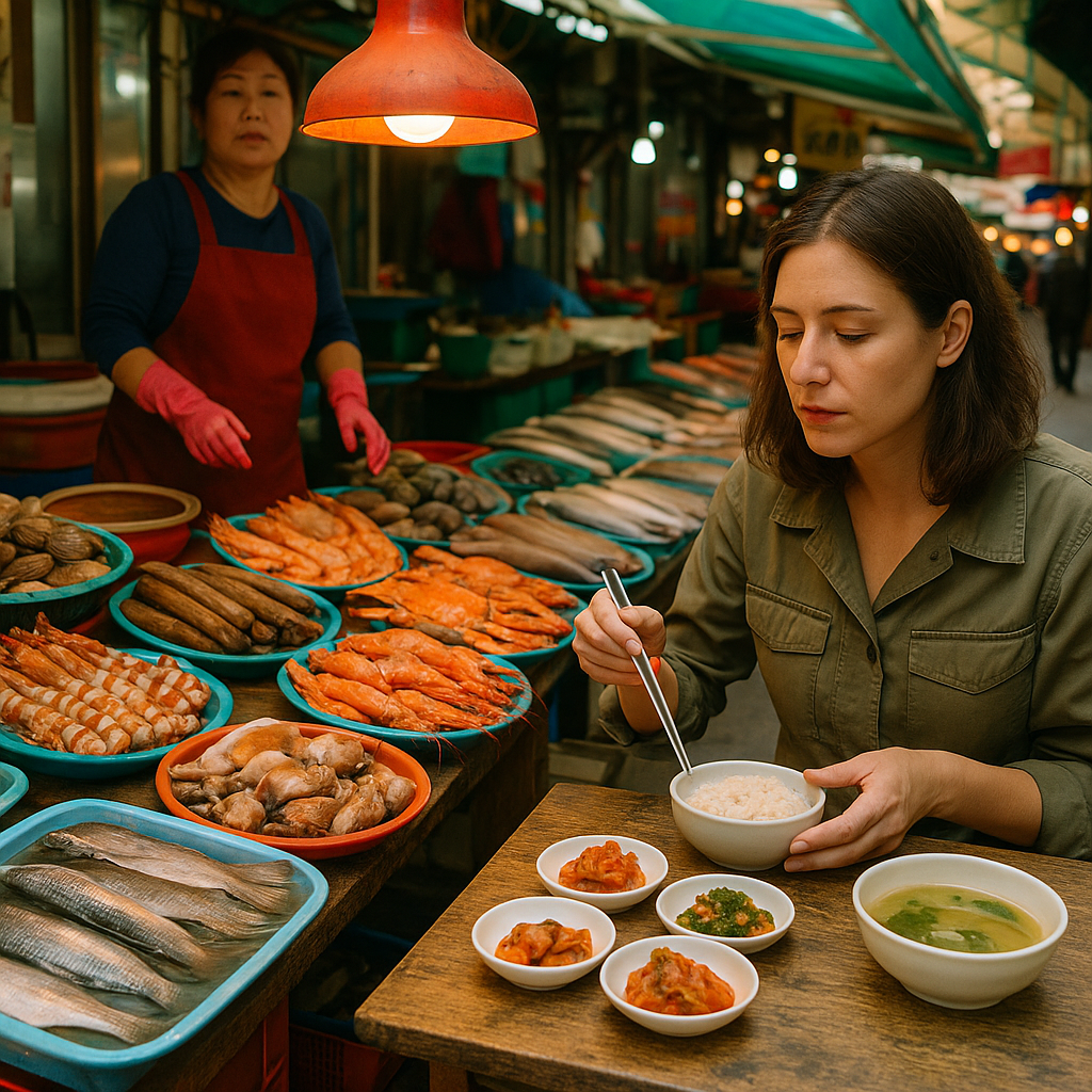여행에서 먹거리를 빼놓을 수 없죠! 기장 시장은 특히 대게와 곰장어가 유명해요. 시장 통로를 걷다 보면 각종 해산물이 활기차게 진열돼 있고, 즉석에서 요리해주는 식당도 많아요. 저는 혼자였지만 소소하게 회덮밥과 기장 멸치 정식을 맛봤는데, 가격도 합리적이고 맛도 훌륭했어요 😋 혼자 가도 부담 없는 메뉴가 많아서 꼭 한 끼 들르시길 추천드려요.
